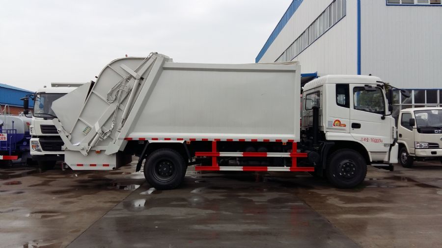 東風D913壓縮式垃圾車底盤配置:原裝東風底盤,軸距3.95米,新款D9方臉駕駛室,寬體帶臥鋪,康明斯4缸160馬力新型發動機或玉柴160馬力發動機,6檔變速箱,3.9噸前橋,8噸后橋,9.00R-20鋼絲胎帶備胎,250等截面大梁,24伏電瓶,帶方向助力,離合助力,氣剎,加強型板簧,帶暖風。