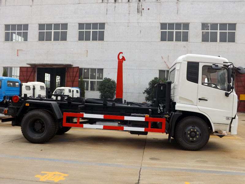 東風天錦12方拉臂式垃圾車底盤配置:康明斯6缸180馬力發動機,國五排放標準,6檔變速箱,原裝空調,帶ABS,帶行車記錄儀,平板式壓縮箱體,外形美觀,帶臥鋪駕駛室,珍珠白駕駛室,白玉色或紅色車身.