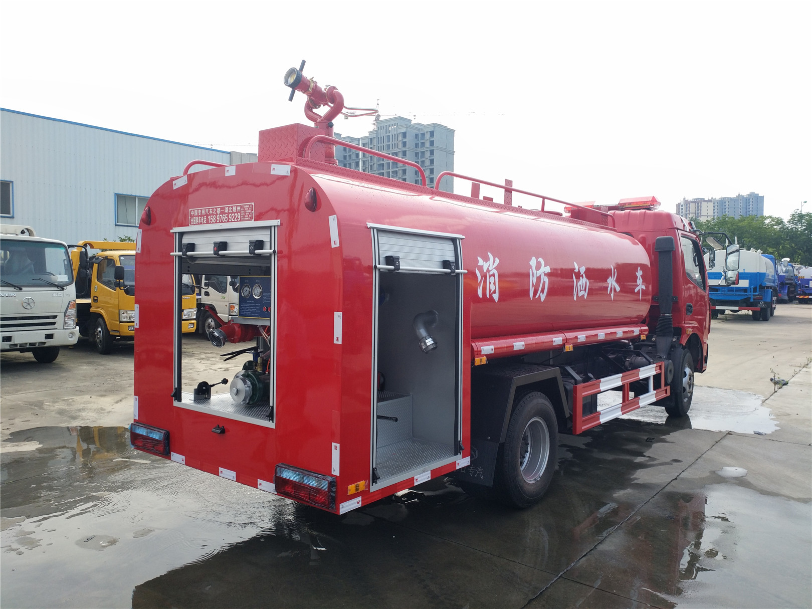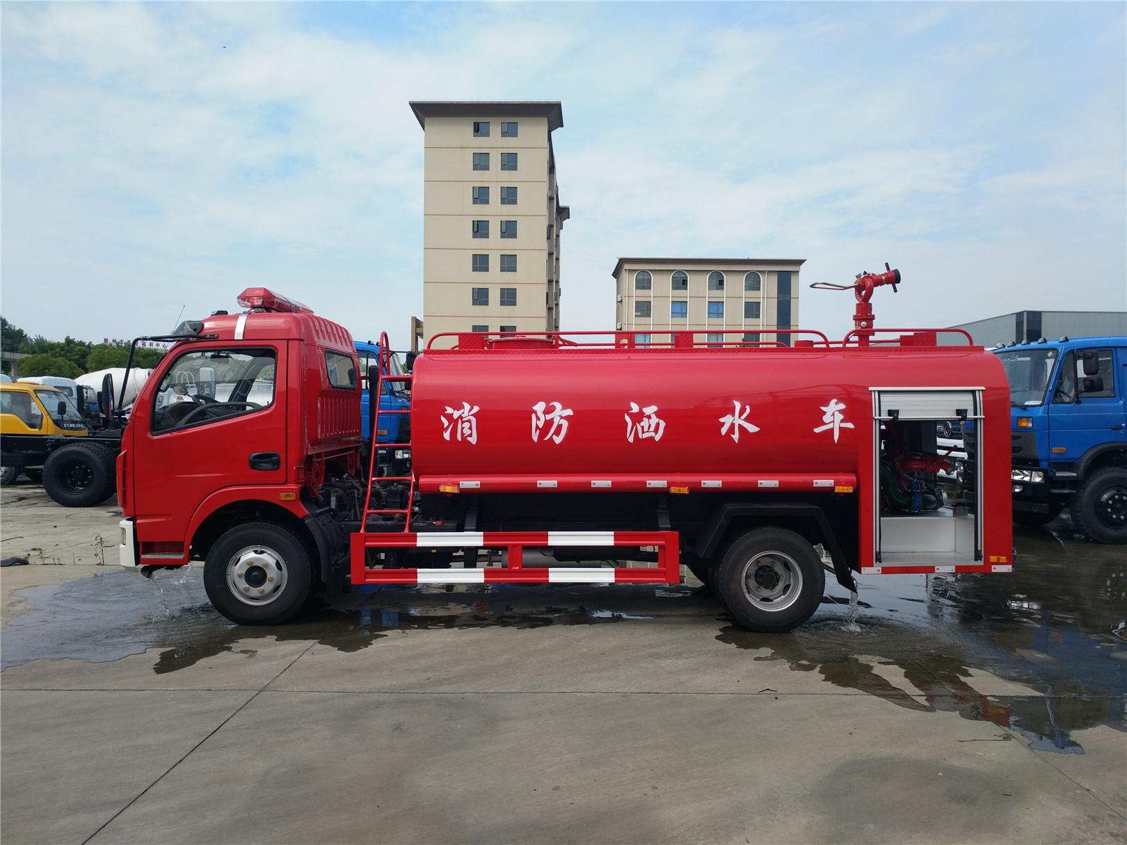 消防車又名:滅火車、救火車、水罐消防車。采用二類載貨汽車底盤改裝而成,專用部分由液罐、泵室、器材箱、動(dòng)力輸出及傳動(dòng)系統(tǒng)、管路系統(tǒng)、電氣系統(tǒng)等 組成,廣泛適用于城鎮(zhèn)公安消防隊(duì)、石油化工、廠礦企業(yè)、森林、港口、碼頭等部門,可迅速接近火場(chǎng)展開(kāi)滅火戰(zhàn)斗,撲救各種火災(zāi) ,是理想的消防裝備。