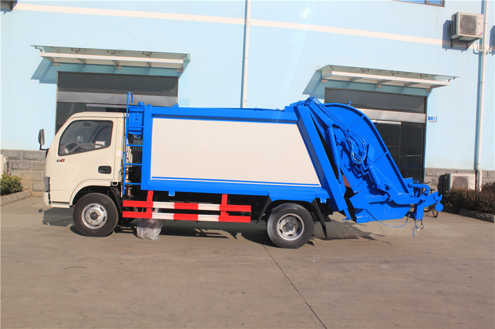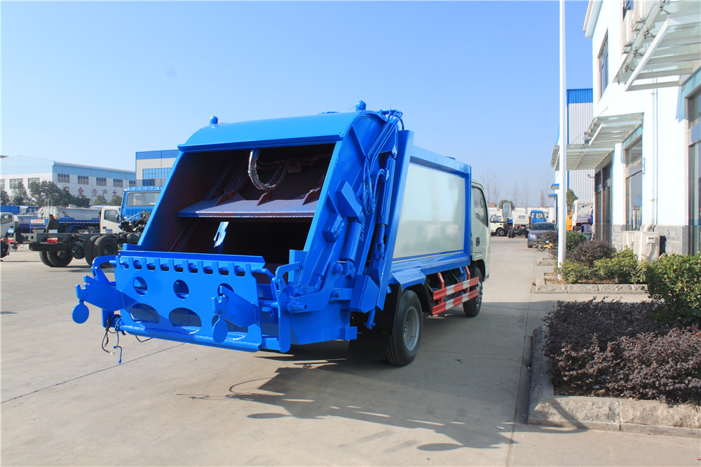 東風銳鈴壓縮式垃圾車上裝配置:有效壓縮容積5方,可裝4-5噸生活垃圾,壓縮倍率3-4倍,壓縮后生活垃圾密度從0.36變為0.95以上,帶污水收集箱,新款平板式箱體更美觀,尾部 帶密封橡膠墊,可防污水滴漏二次污染。尾部可帶翻轉斗或掛桶裝置,可選裝PLC一鍵操控系統,駕駛室和尾部雙操控機構。